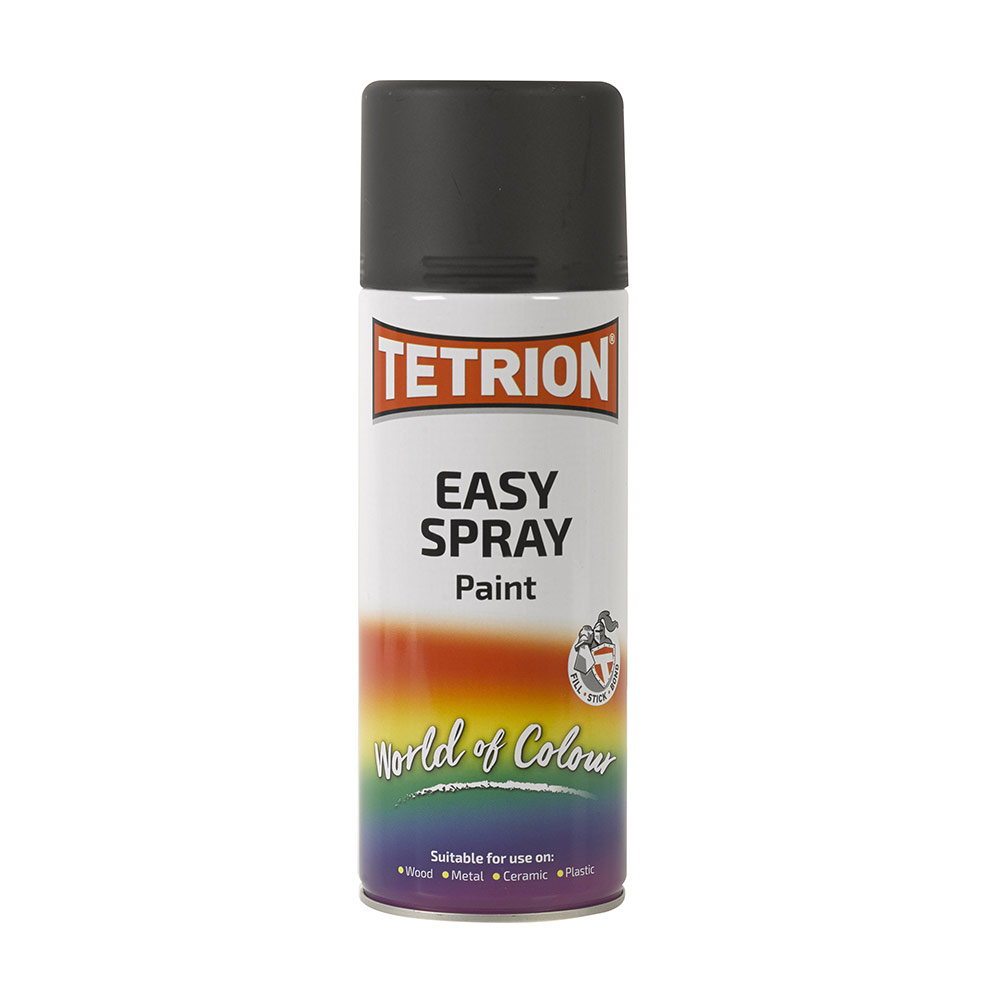 Tetrion Easy Spray is a range of all-purpose, acrylic based spray paint for interior and exterior use. It is suitable for many surfaces including wood, metal, MDF, ceramic and plastic.